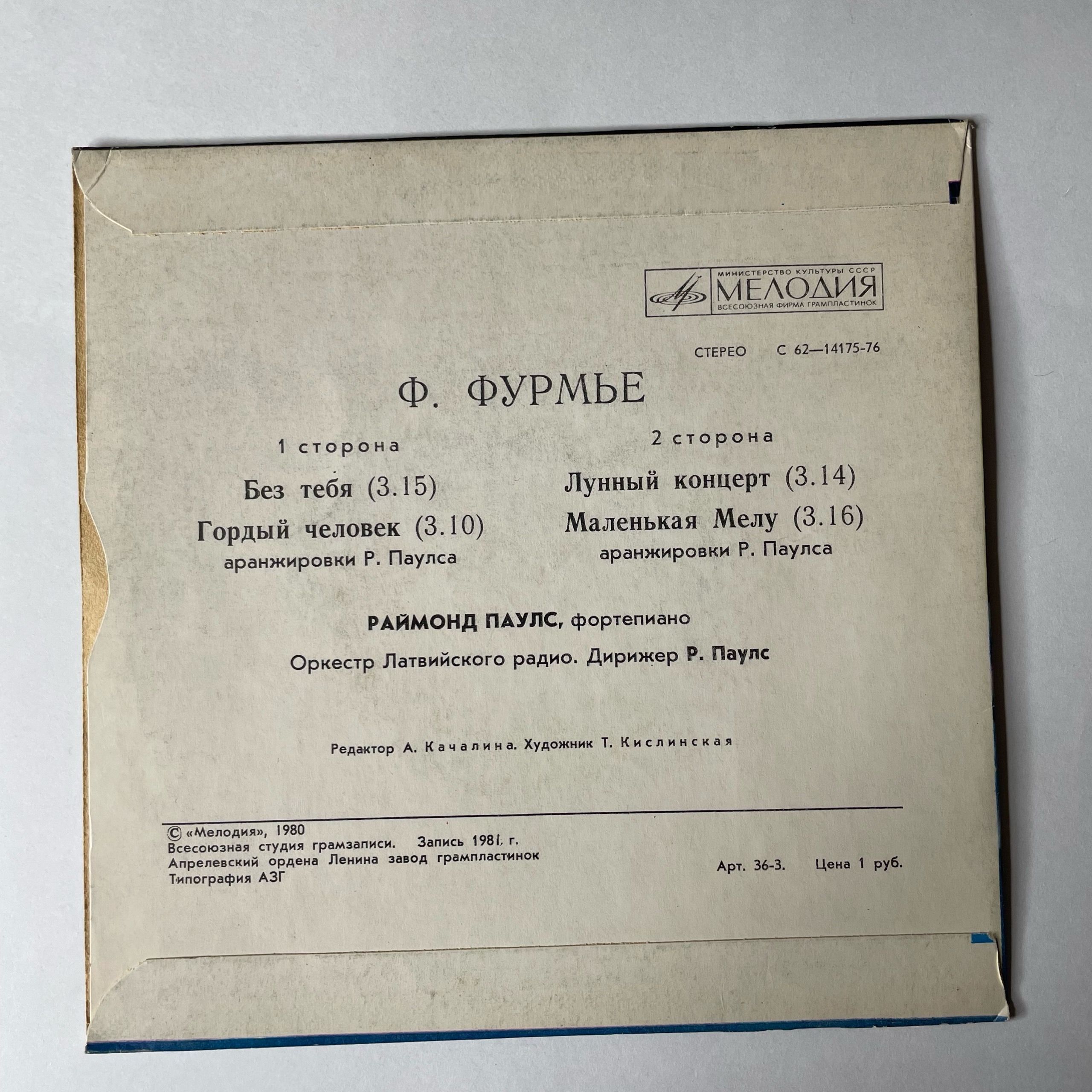 Комплектуется новым внешним и антистатическим конвертом. Подробную информацию о состоянии пластинки/конверта, старны производства и год выпуска можно узнать в разделе "Характеристики".