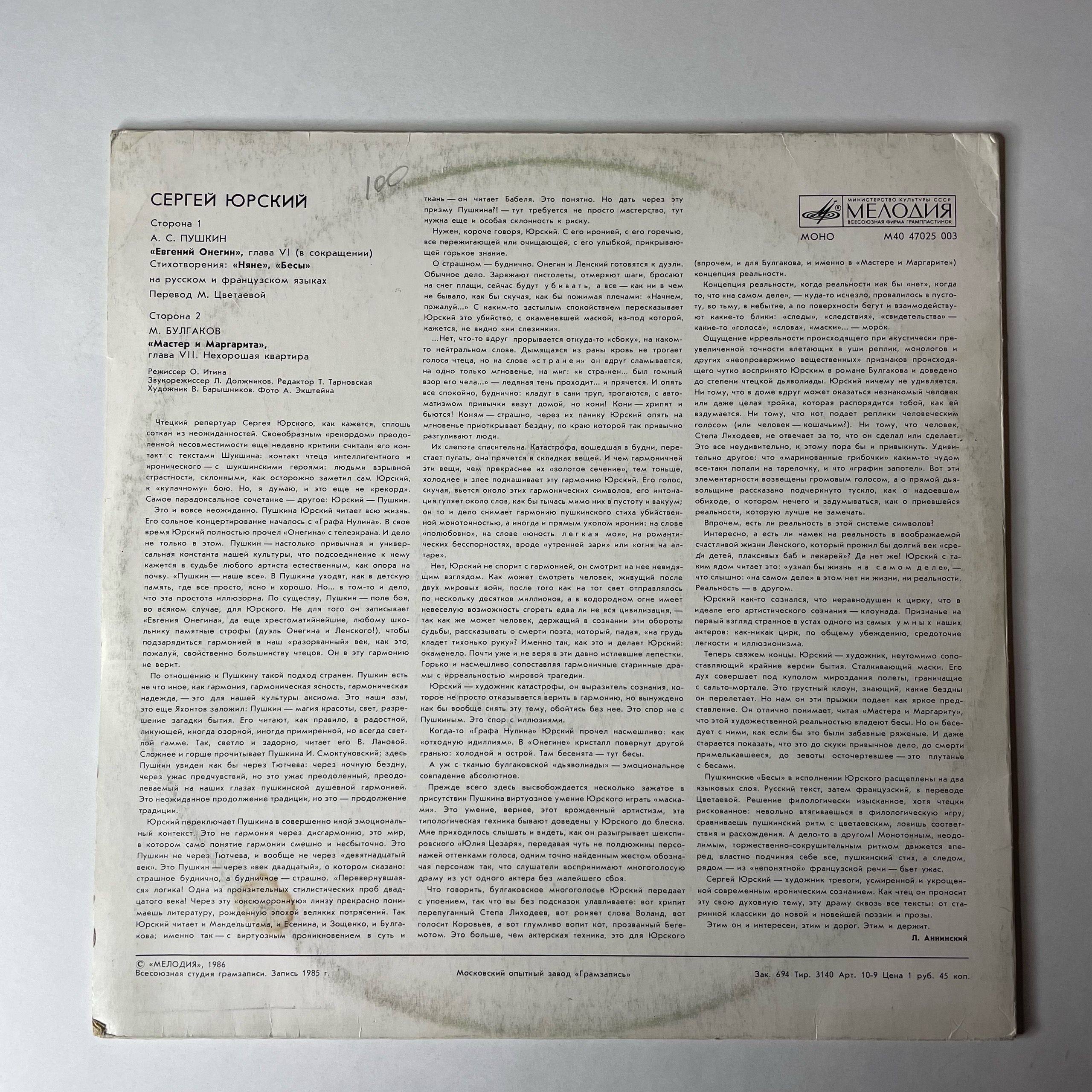 Комплектуется новым внешним и антистатическим конвертом. Подробную информацию о состоянии пластинки/конверта, старны производства и год выпуска можно узнать в разделе "Характеристики".