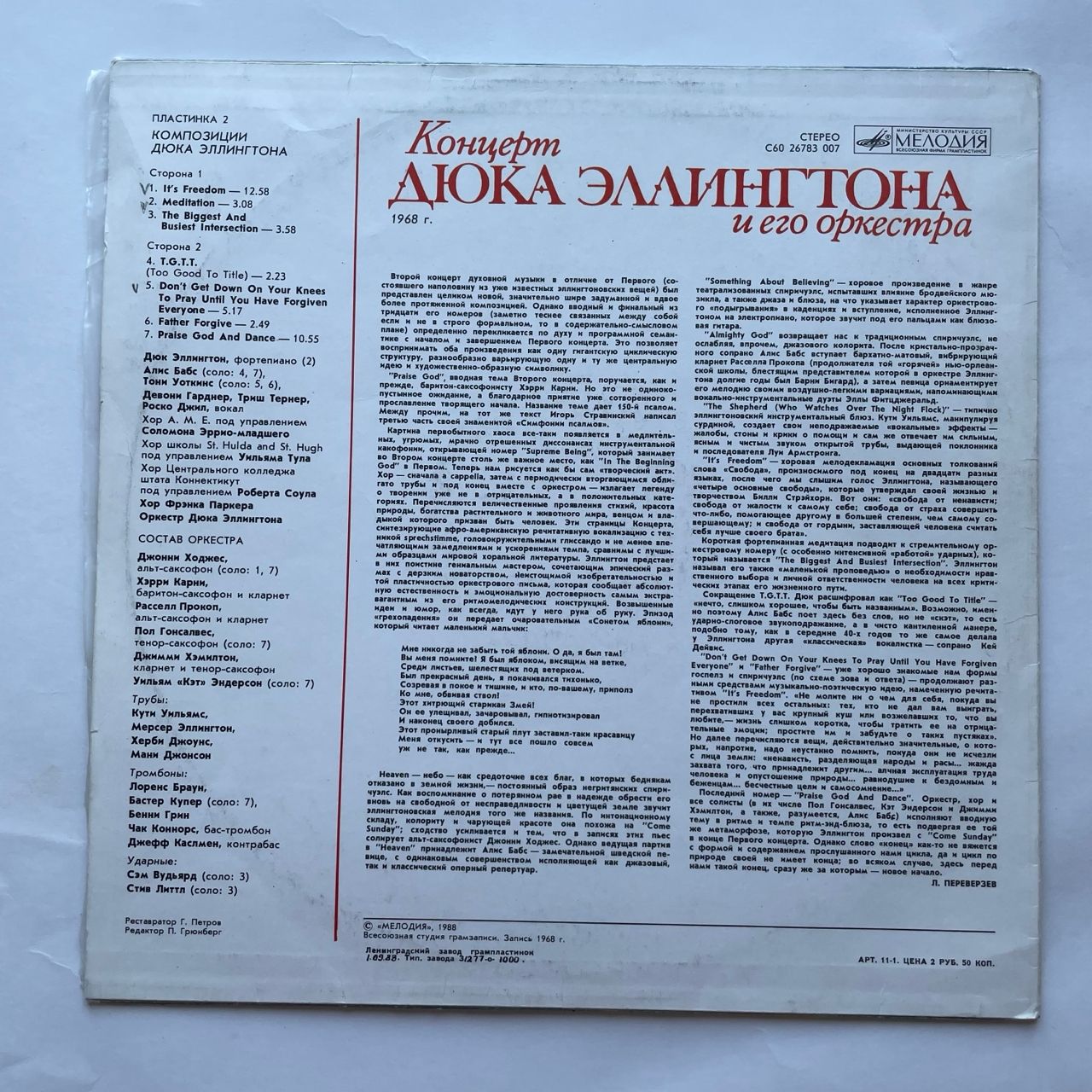 Комплектуется новым внешним и антистатическим конвертом. Подробную информацию о состоянии пластинки/конверта, страны производства и год выпуска можно узнать в разделе "Характеристики".