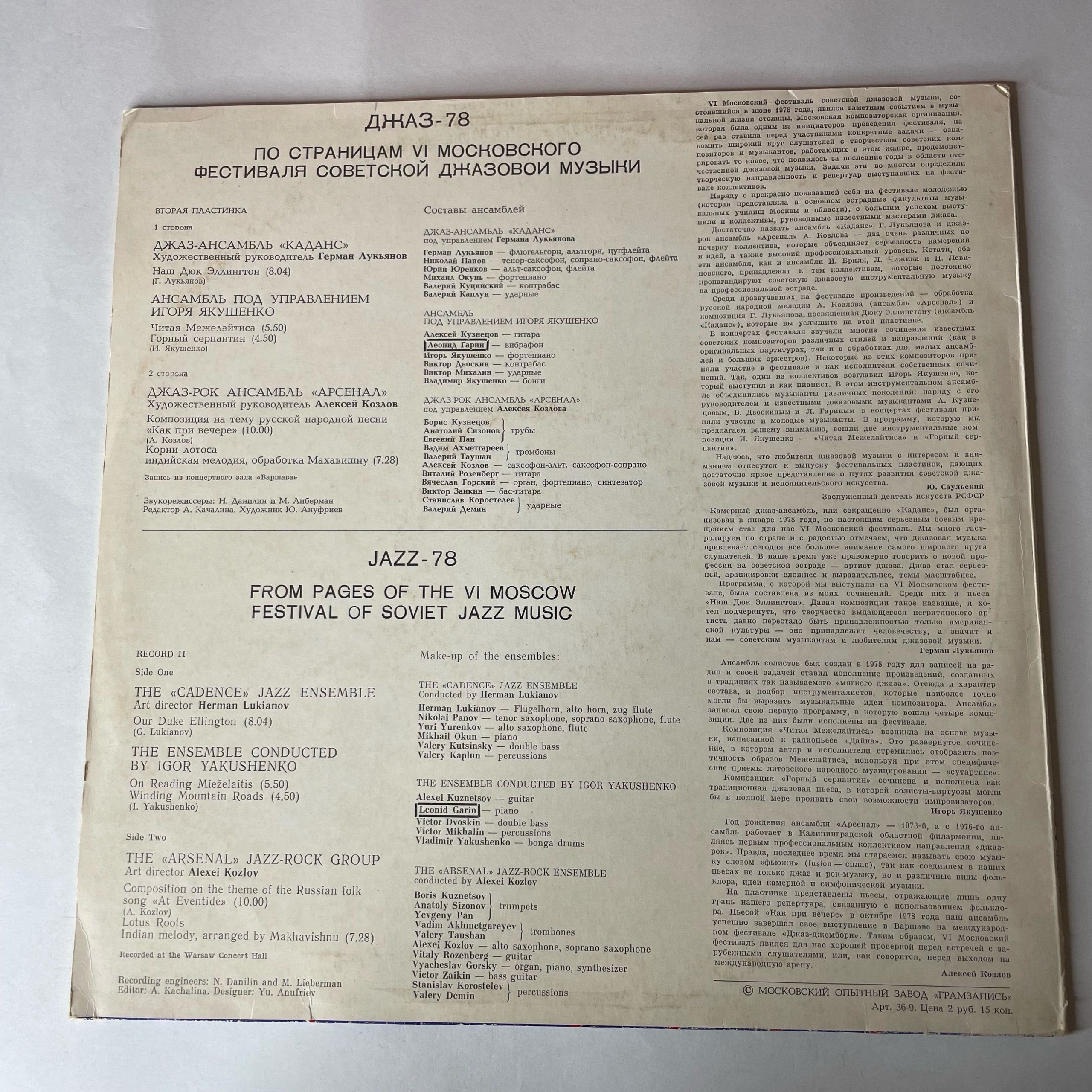 B1 Джаз-рок Ансамбль «Арсенал»*– Композиция На Тему Русской Народной Песни «Как При Вечере»,