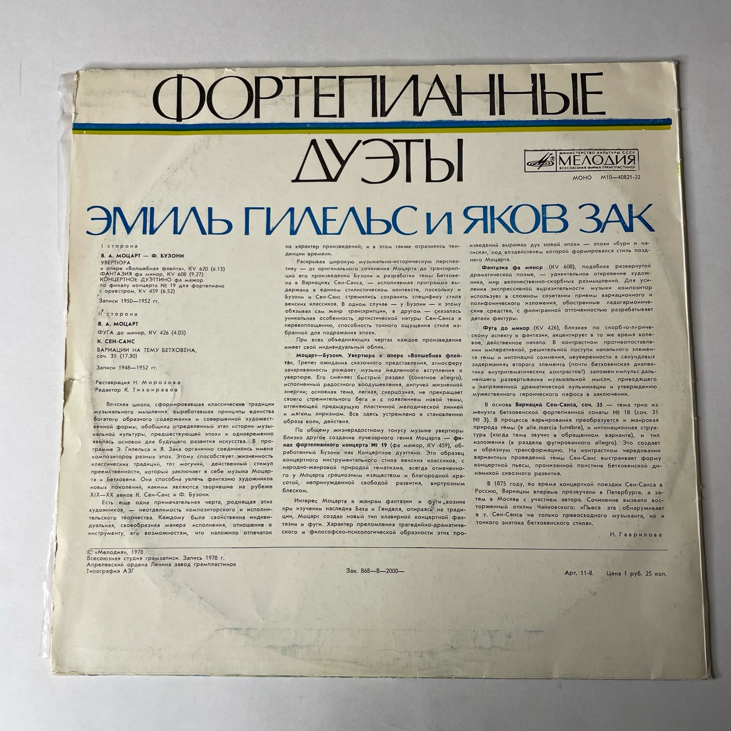 Комплектуется новым внешним и антистатическим конвертом. Подробную информацию о состоянии пластинки/конверта, страны производства и год выпуска можно узнать в разделе "Характеристики".