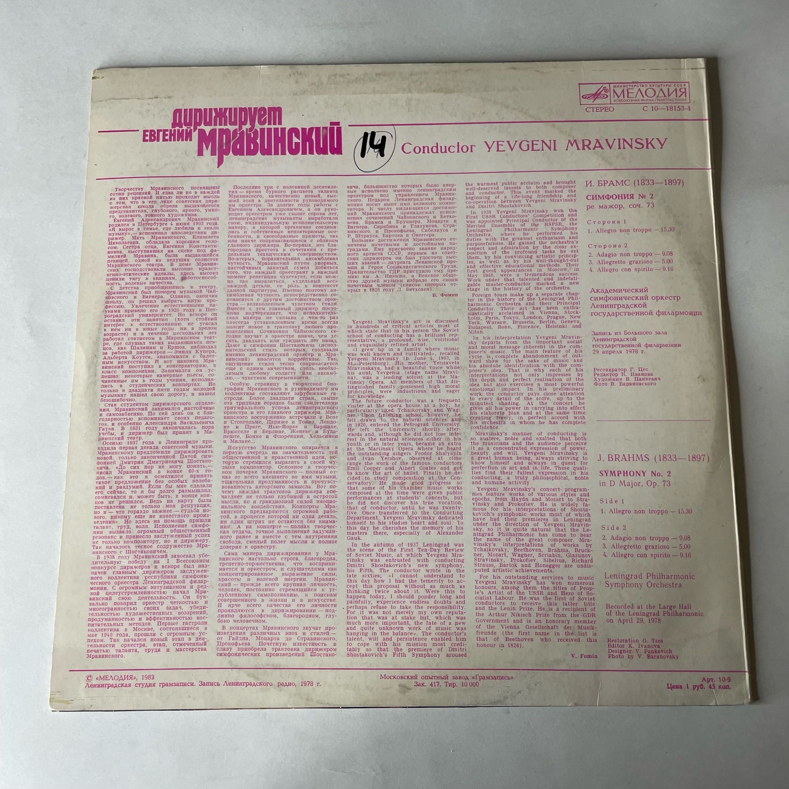 Комплектуется новым внешним и антистатическим конвертом. Подробную информацию о состоянии пластинки/конверта, страны производства и год выпуска можно узнать в разделе "Характеристики".
