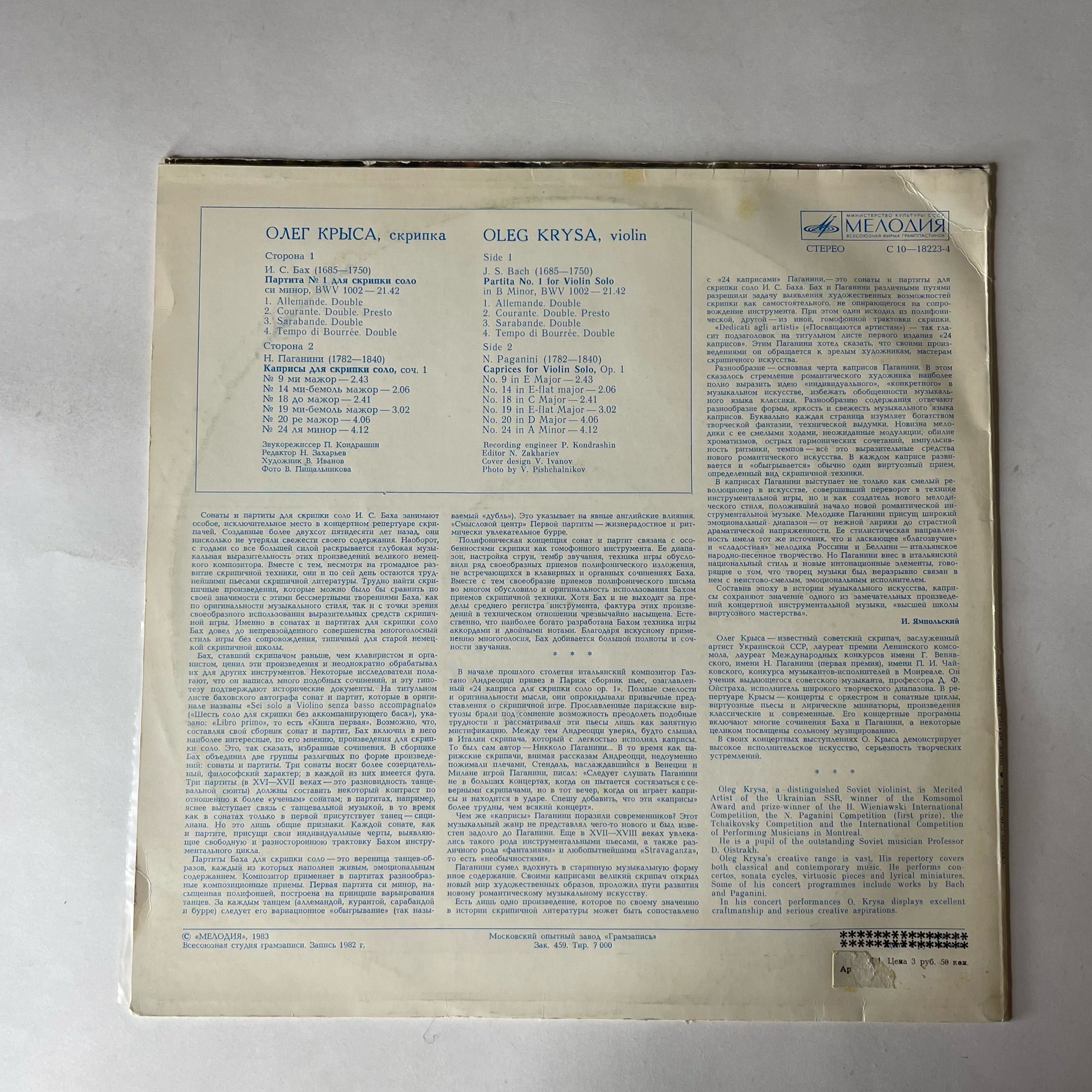 Комплектуется новым внешним и антистатическим конвертом. Подробную информацию о состоянии пластинки/конверта, страны производства и год выпуска можно узнать в разделе "Характеристики".