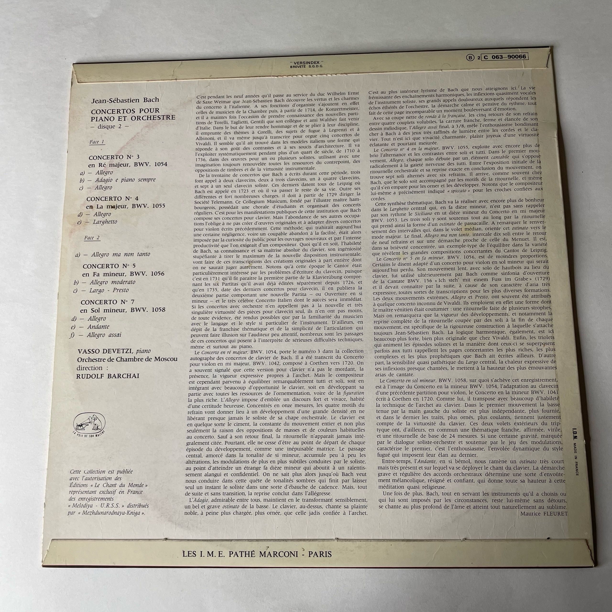 Винтажная виниловая пластинка LP J.S. Bach, И. С. Бах, Vasso Devetzi, Рудольф Баршай Rudolf Barshai, Concertos Pour Piano Et Orchestre (Disque 2) (Франция 1969)