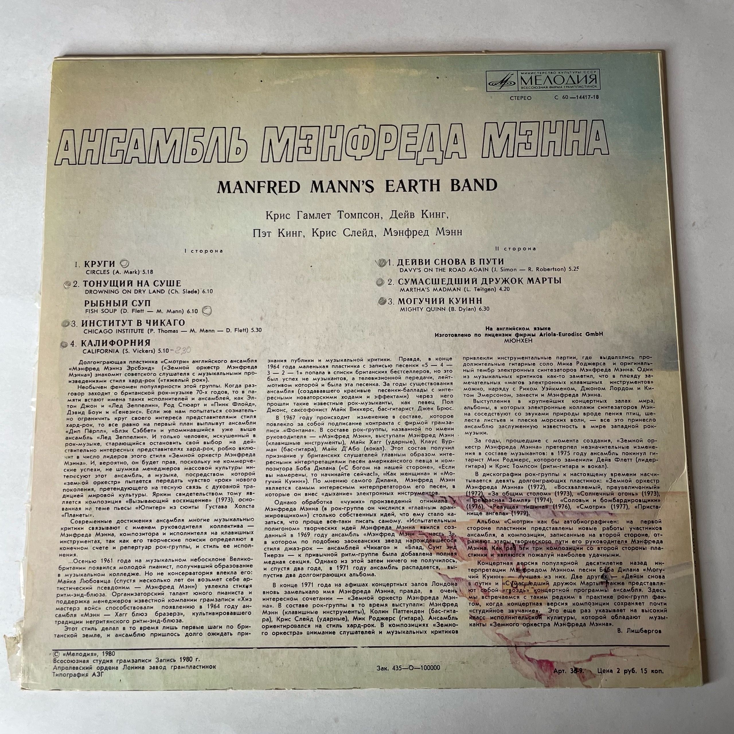 Комплектуется новым внешним и антистатическим конвертом. Подробную информацию о состоянии пластинки/конверта, страны производства и год выпуска можно узнать в разделе "Характеристики".