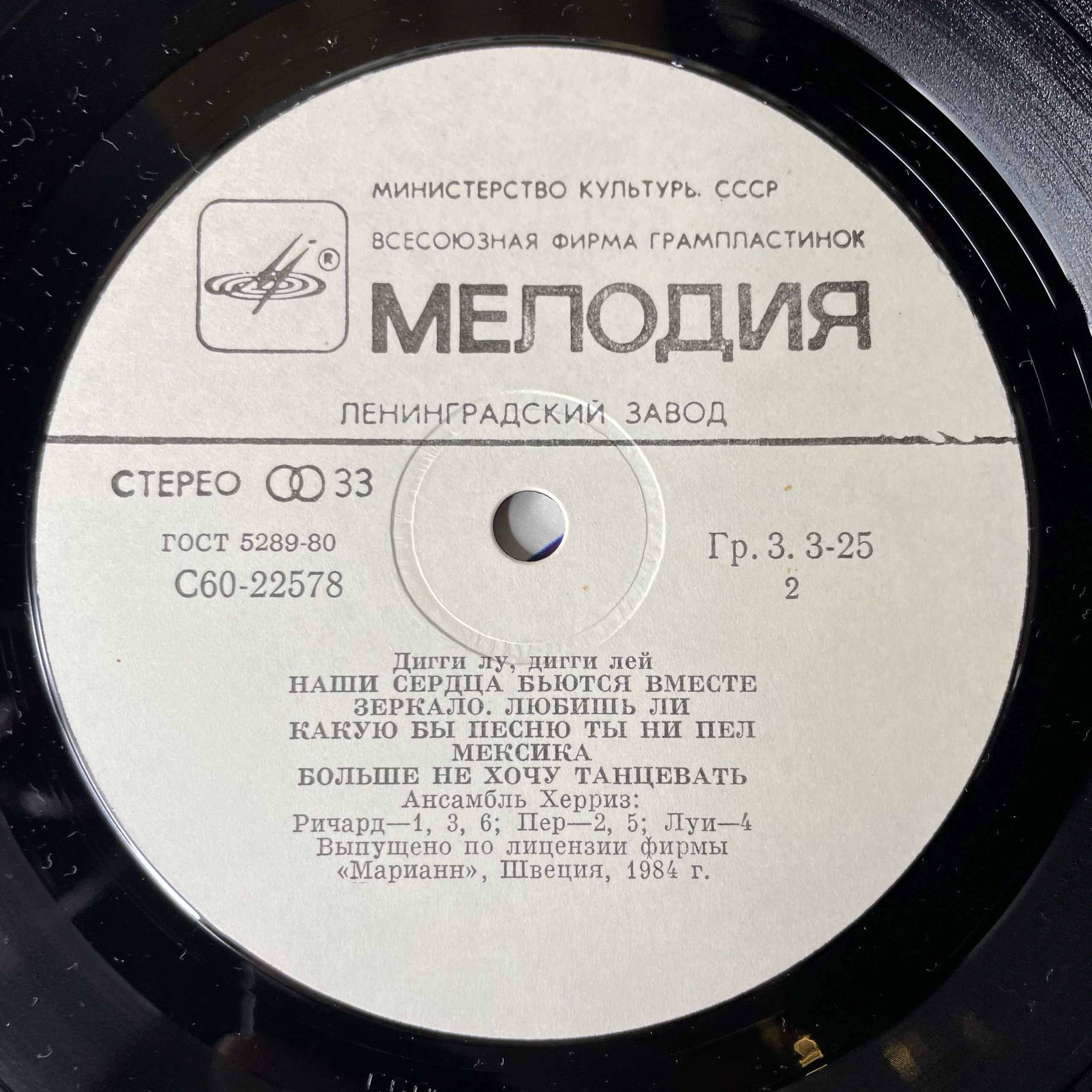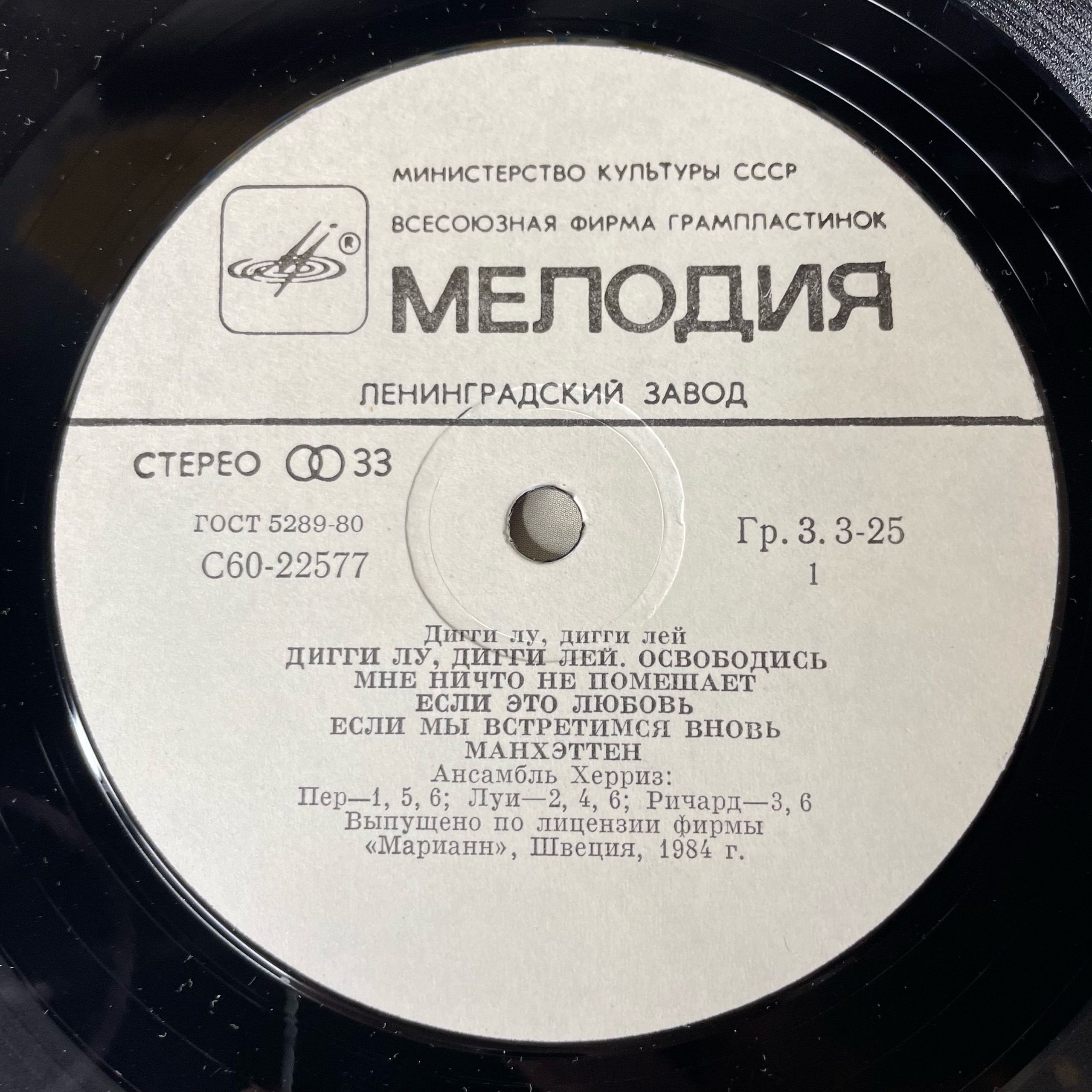 Винтажная виниловая пластинка LP The Herreys Дигги Лу, Дигги Лей, Diggi Loo, Diggi Ley (СССР 1985) Если Это Любовь