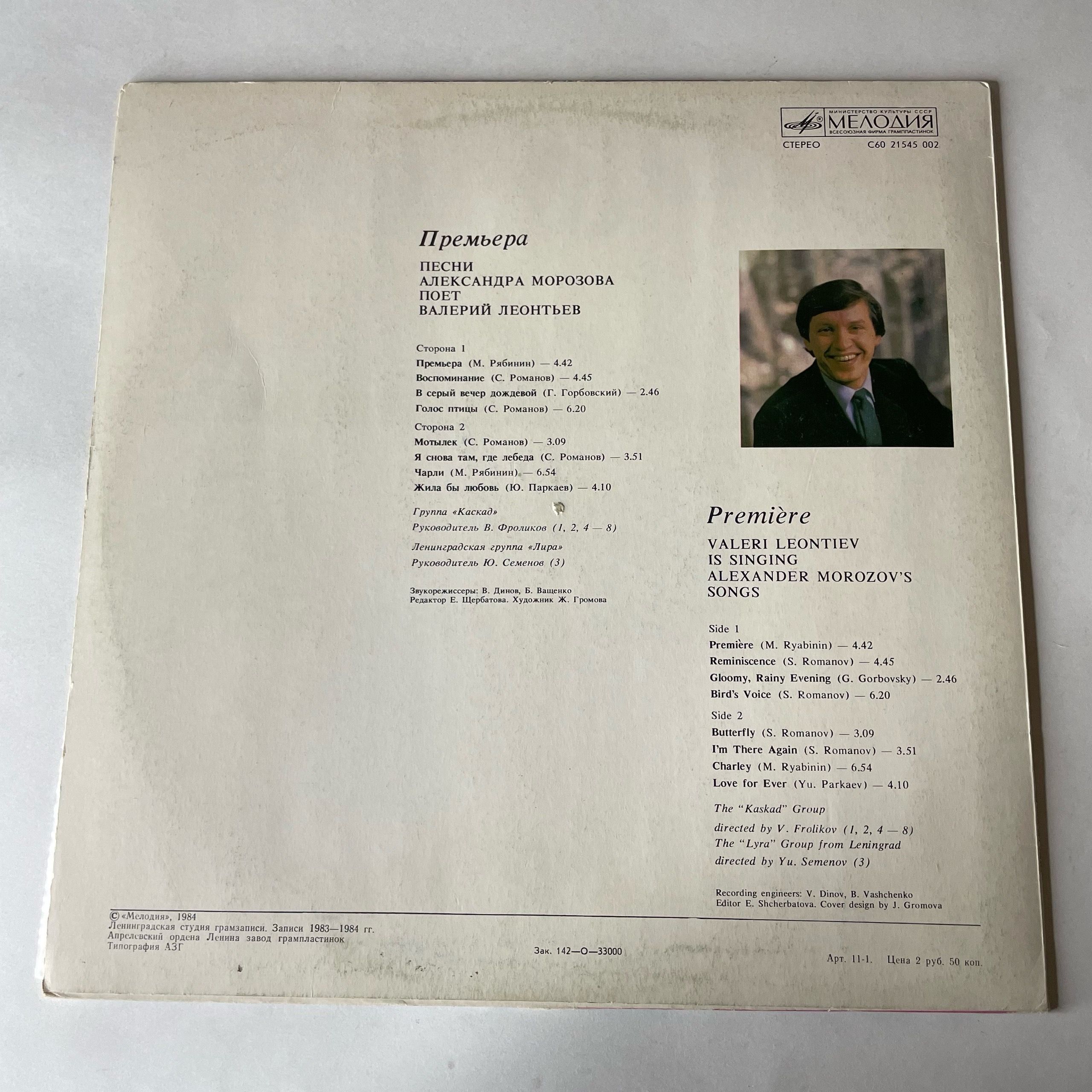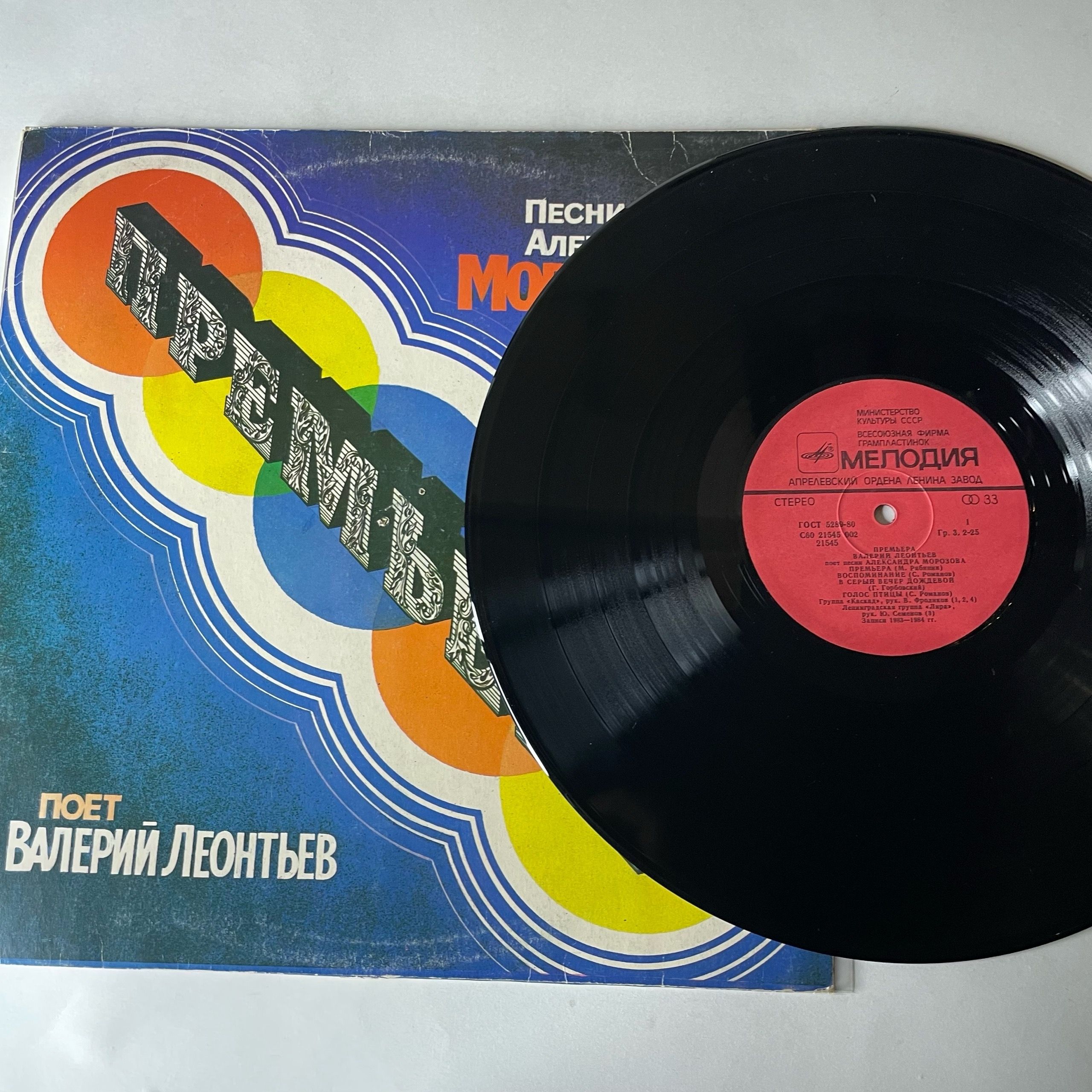 Винтажная виниловая пластинка LP Валерий Леонтьев Премьера, Песни Александра Морозова поет Валерий Леонтьев (СССР 1984)