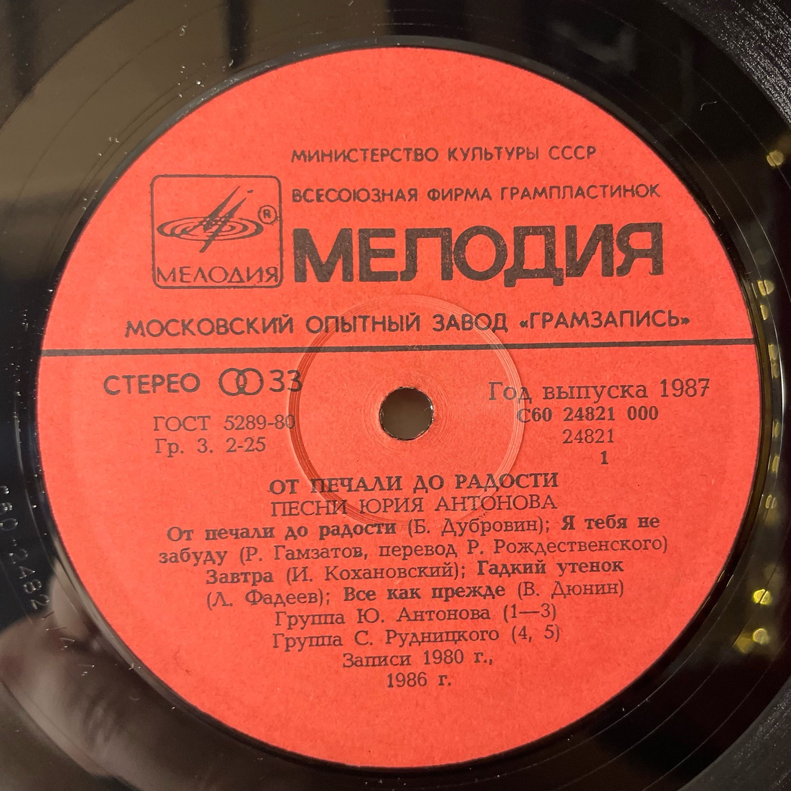 Винтажная виниловая пластинка