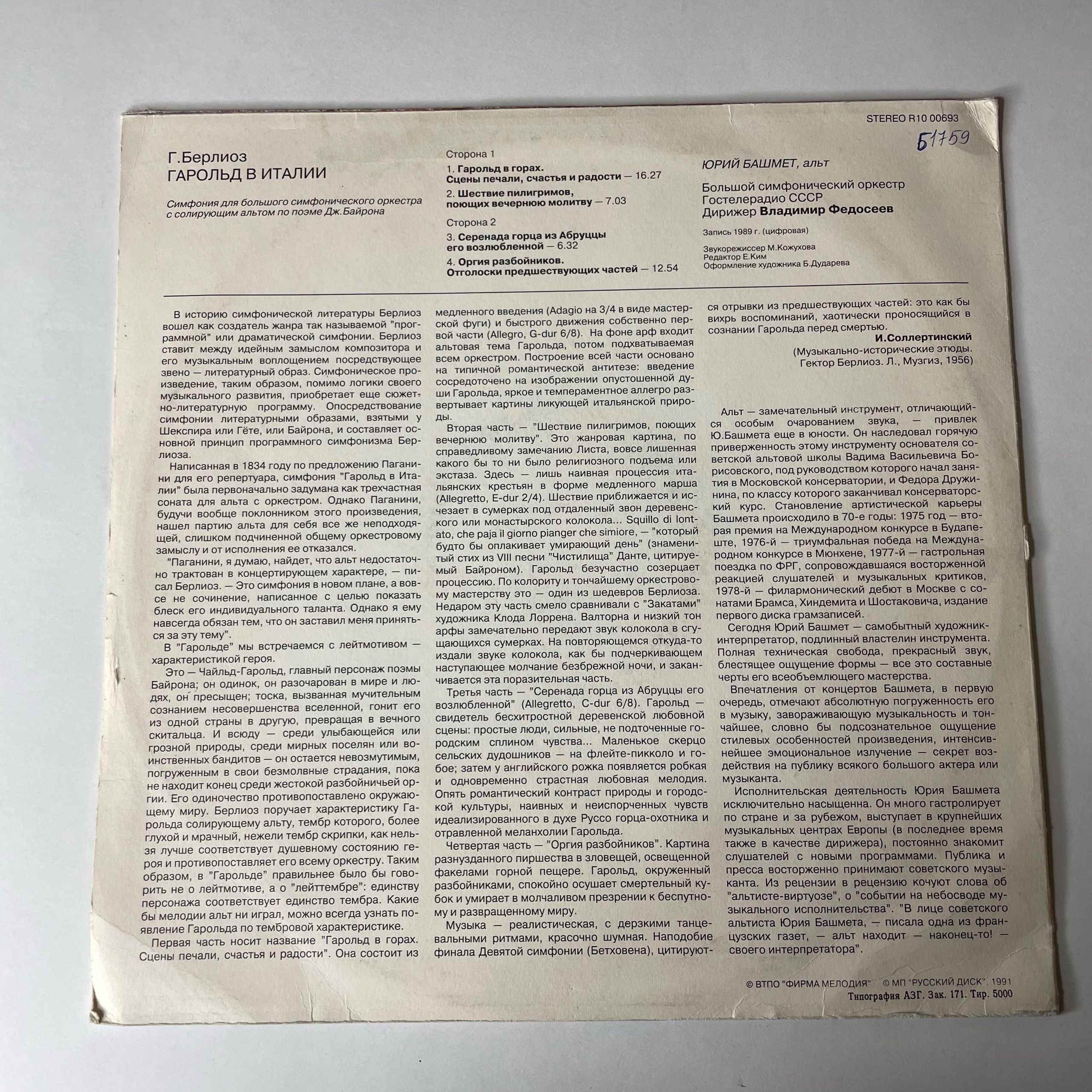 Комплектуется новым внешним и антистатическим конвертом. Подробную информацию о состоянии пластинки/конверта, старны производства и год выпуска можно узнать в разделе "Характеристики".